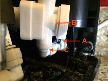 13. ‘A’ indicates the leak (you can see a drip is forming) but this was taken with water supply attached and on (see section 1.)