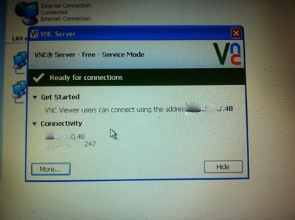 Then all you have to do is create a new VNC entry on the Viewer device with identical IP address and subnet mask (not forgetting VNC security if any is set) to the ad hoc adaptors ones and you should find your VNC client will connect fine and shows something like this...