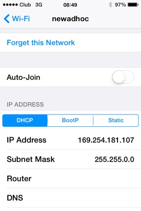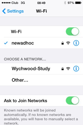 Next, fire up your iPhone and go to ‘Settings’ and try to connect with the NewAdHoc network (obviously you will need to be within range which means a few metres)...