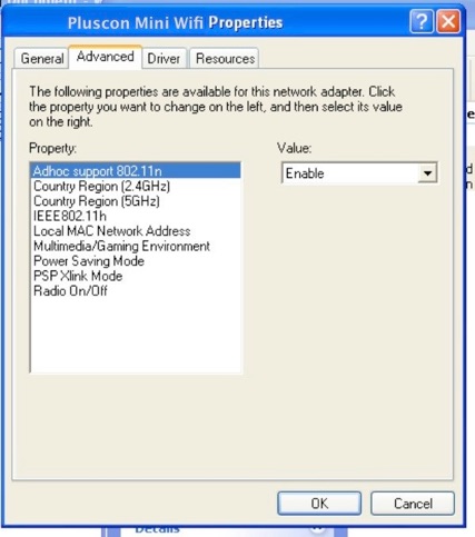 Once installed, ensure the adaptor is set to ‘Ad Hoc’ mode rather than ‘Infrastructure’. This will vary from one adaptor to another but normally you will find a setting in the Adaptor’s Device Manager properties like this... Click on ‘Start’, right-click on ‘My Computer’, ‘Properties’, ‘Hardware’, Device manager...